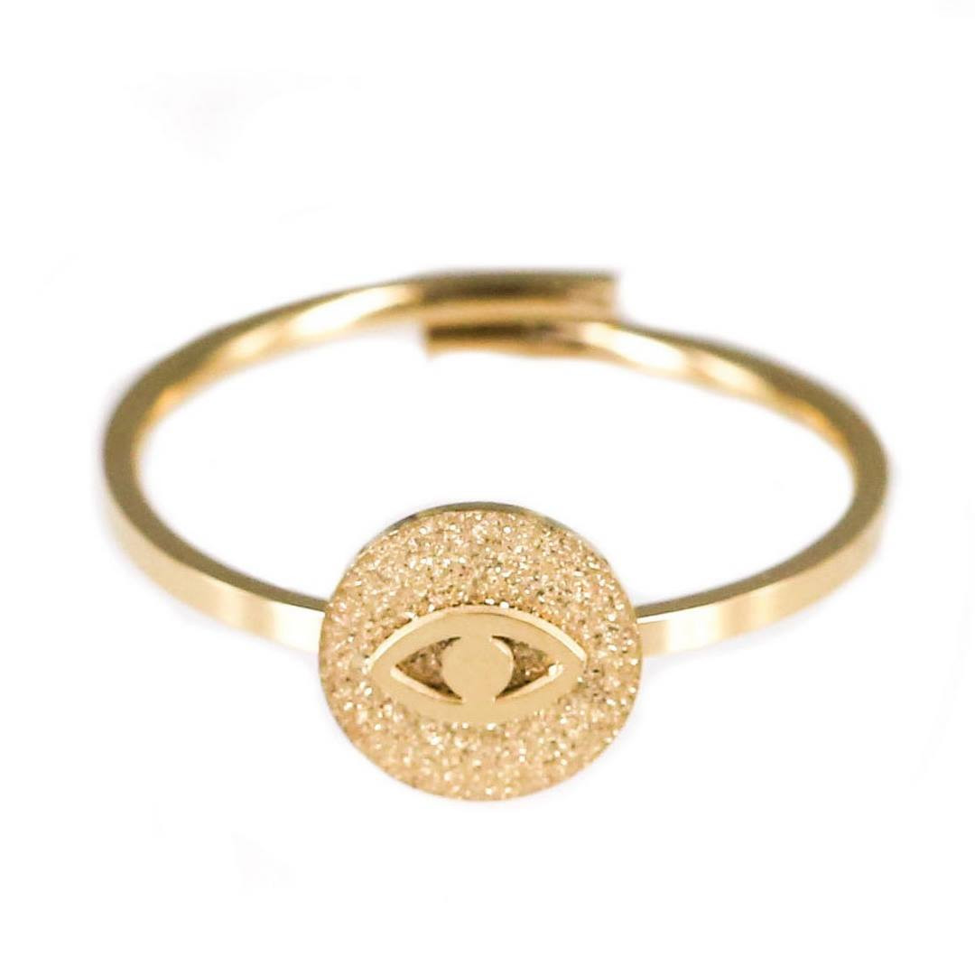 Bague ajustable Horus en acier doré.