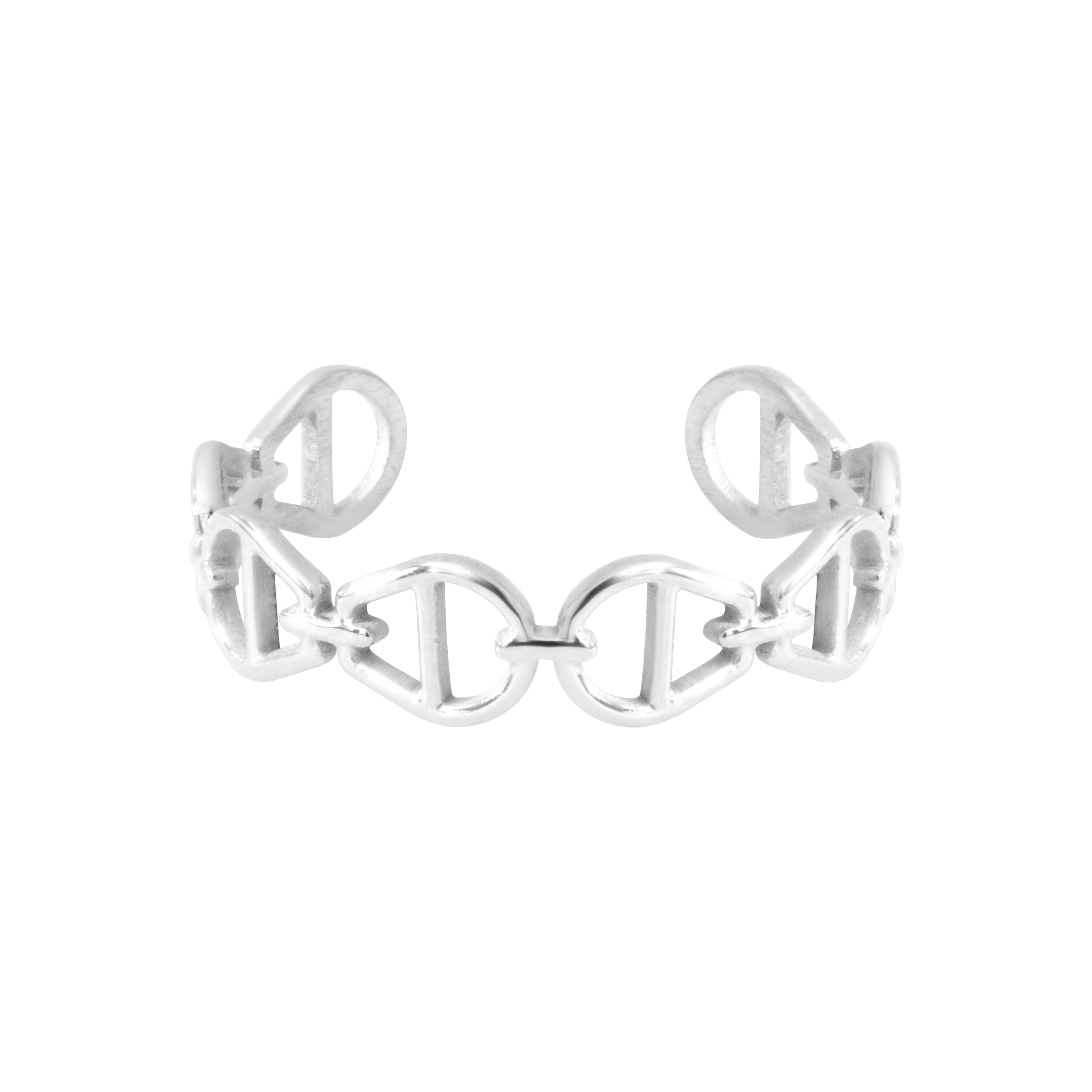 Bague Ajustable Argenté signée N°3 composée d’une maille marine.
