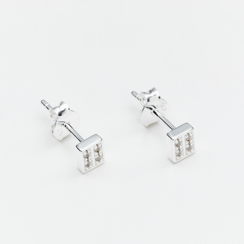 Boucles d'oreilles puces en Argent signées CANYON composées d’un petit rectangle orné de 4 Oxydes blancs.