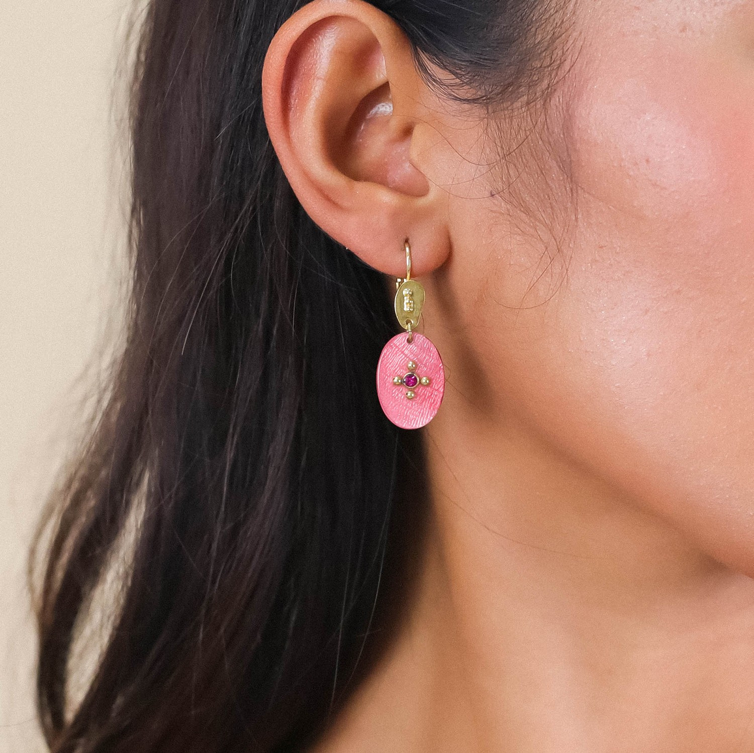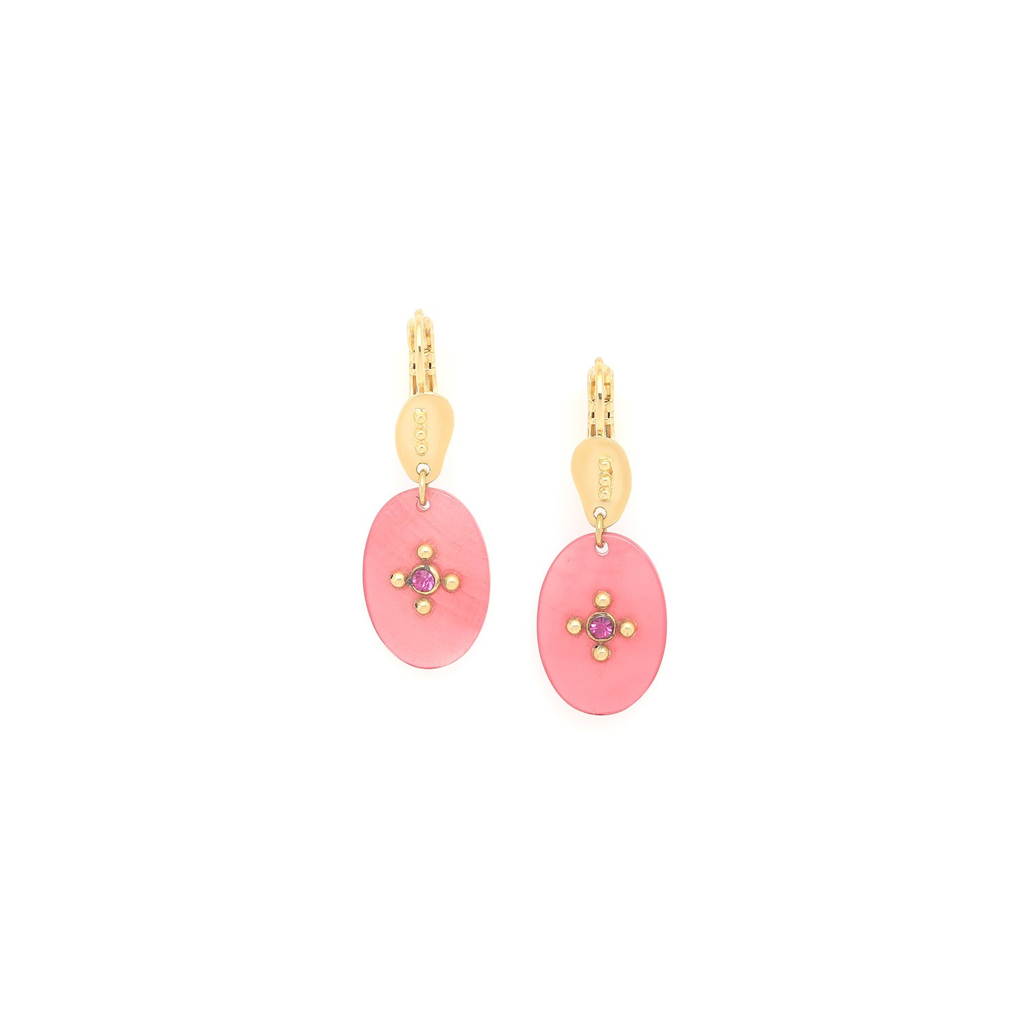 Dormeuses Eva signées FRANCK HERVAL composée d’un ovale en Nacre Rose.