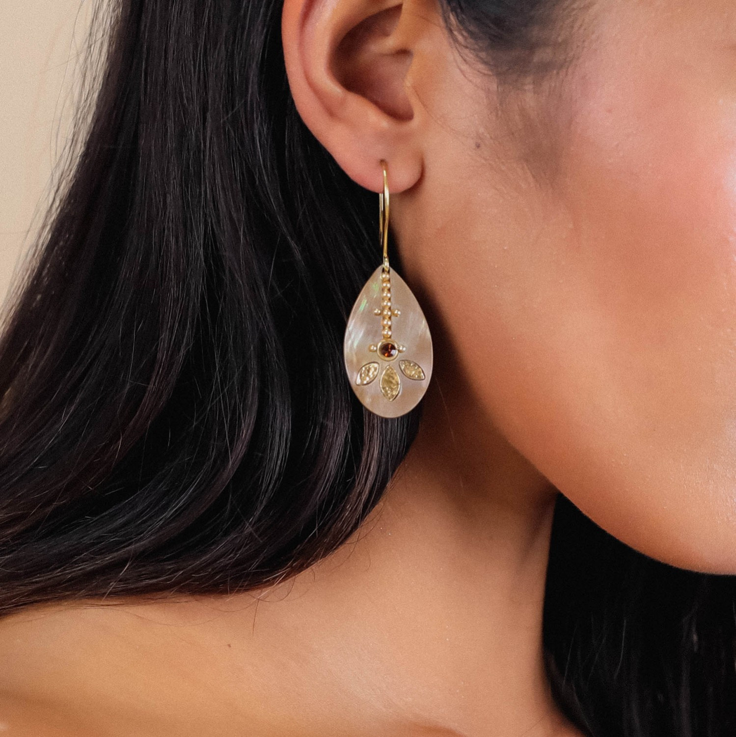 Une ligne de bijoux en nacre brune, incrustés de strass et d'éléments dorés, associés au jaspe brique, pour une allure lumineuse et chaleureuse ! Les boucles d'oreilles aux volumes audacieux et légères seront de véritables pièces maîtresses de votre boîte à bijoux !