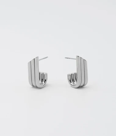 Formées de trois anneaux géométriques collés les uns aux autres, ces boucles d’oreilles ont une allure très contemporaine.