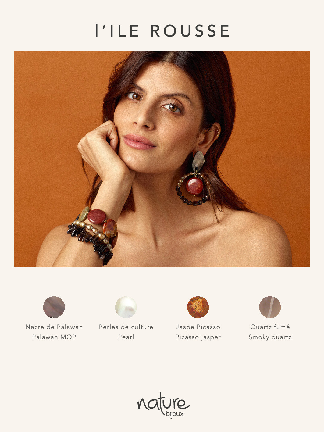 L’Île Rousse raconte une terre chauffée par le soleil, entre roches rouges, sable chaud et lumière dorée. Le jaspe Picasso, avec ses nervures brutes et ses tons terracotta, évoque les paysages minéraux d’une île sauvage. Le quartz fumé y apporte de la profondeur, les perles de culture adoucissent les bijoux en pierres par leur éclat naturel, tandis que la nacre noire de Palawan accroche la lumière avec subtilité. Découvrez sur bijoux-totem.fr, une collection à l’image de ces terres lointaines : forte, authentique, et pleine de nuances.