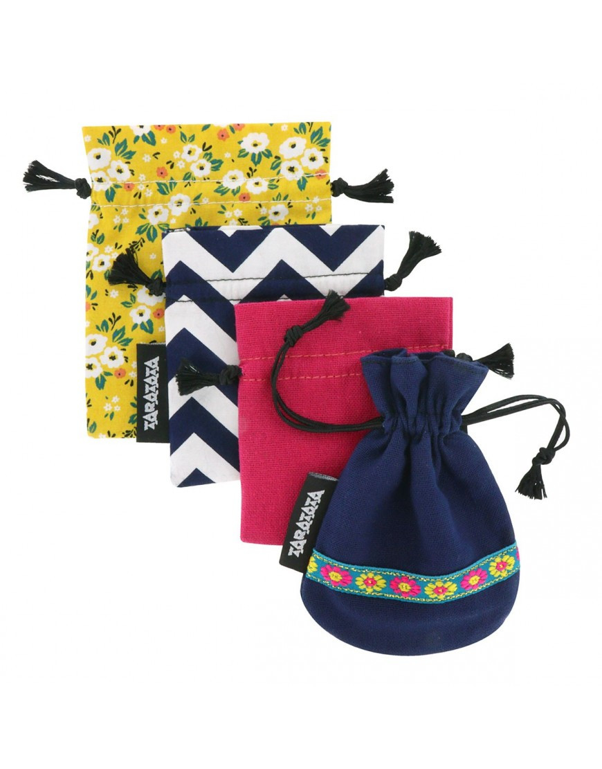 Chacun des bijoux TARATATA est livré avec une pochette en tissu aux motifs sans cesse renouvelés.