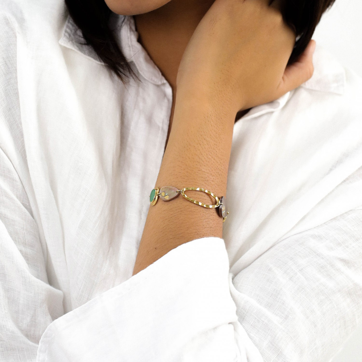 Bracelet Ajustable Multi éléments signé FRANCK HERVAL orné de Pierres Naturelles.