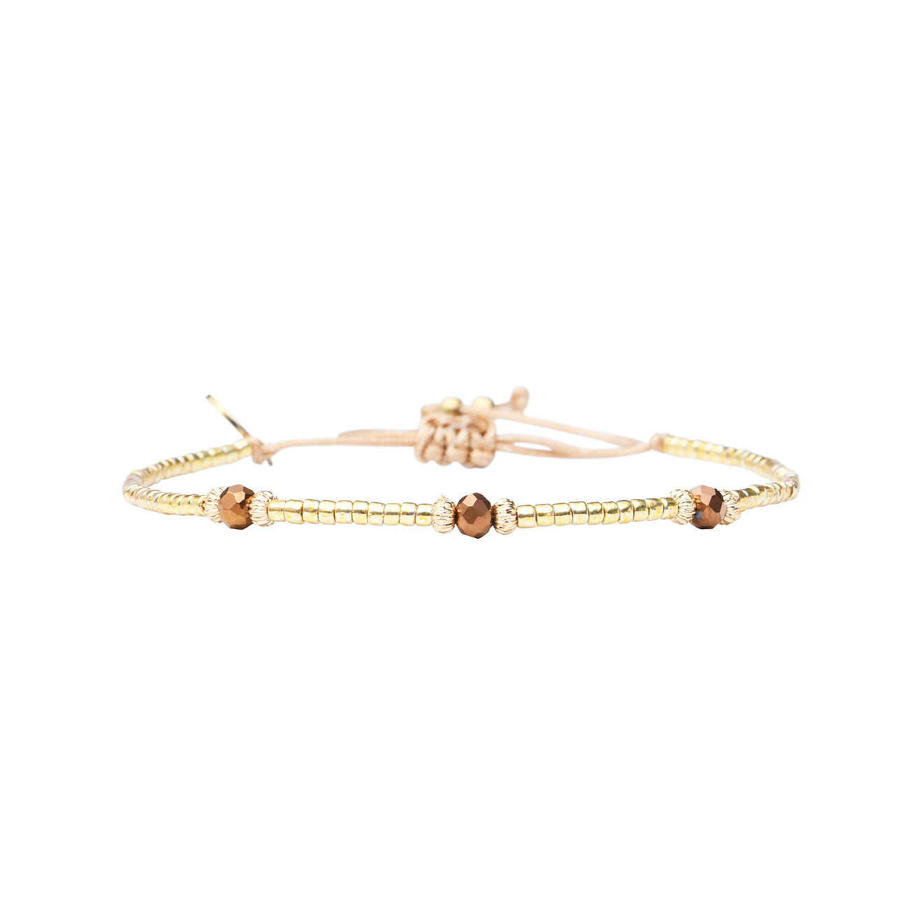 Composition : Laiton doré à l’or fin, Pépites dorées, Perles Miyuki dorées à l’or fin, Cristal.