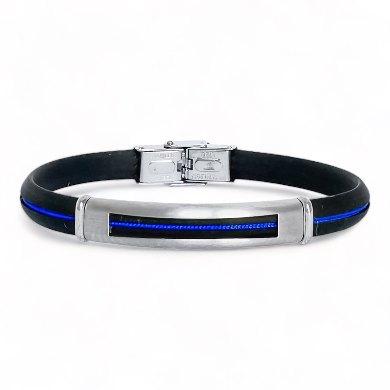 Bracelet Gwen pour Homme en Acier, Caoutchouc et Cordon bleu.