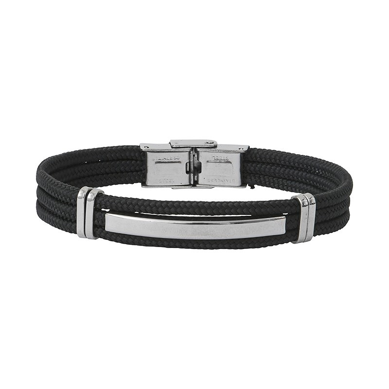 Bracelet Alex pour Homme en Acier et Cordon noir.