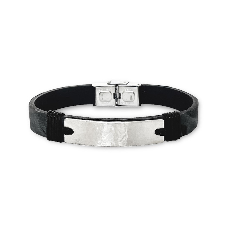 Bracelet homme Zakk signé ELDEN Paris composé de cuir vintage et orné d’une plaque martelée.