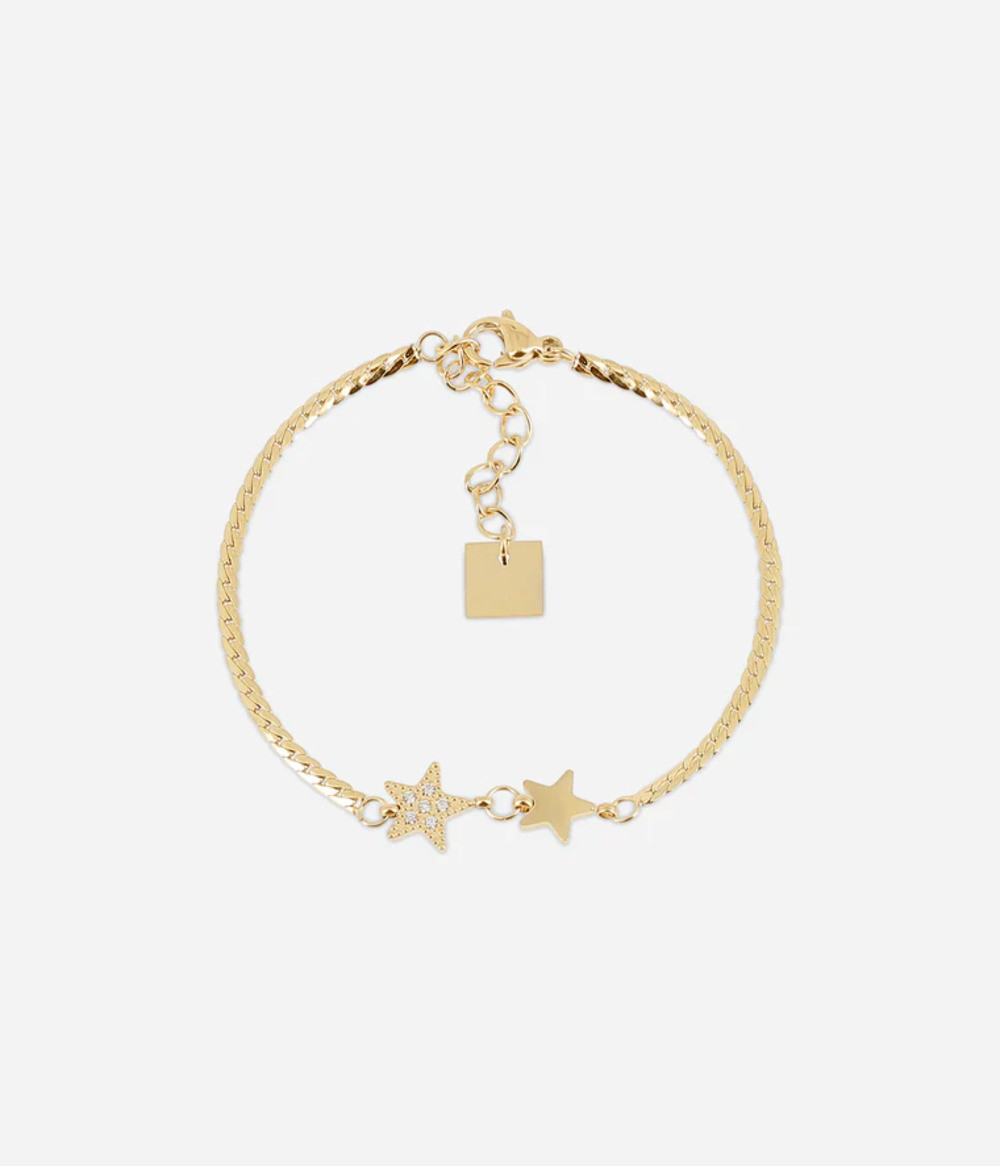 Bracelet Ajustable Anaxes signé ZAG Bijoux serti de petites étoiles en acier. L'une des étoile est rehaussée de petits zirconiums.