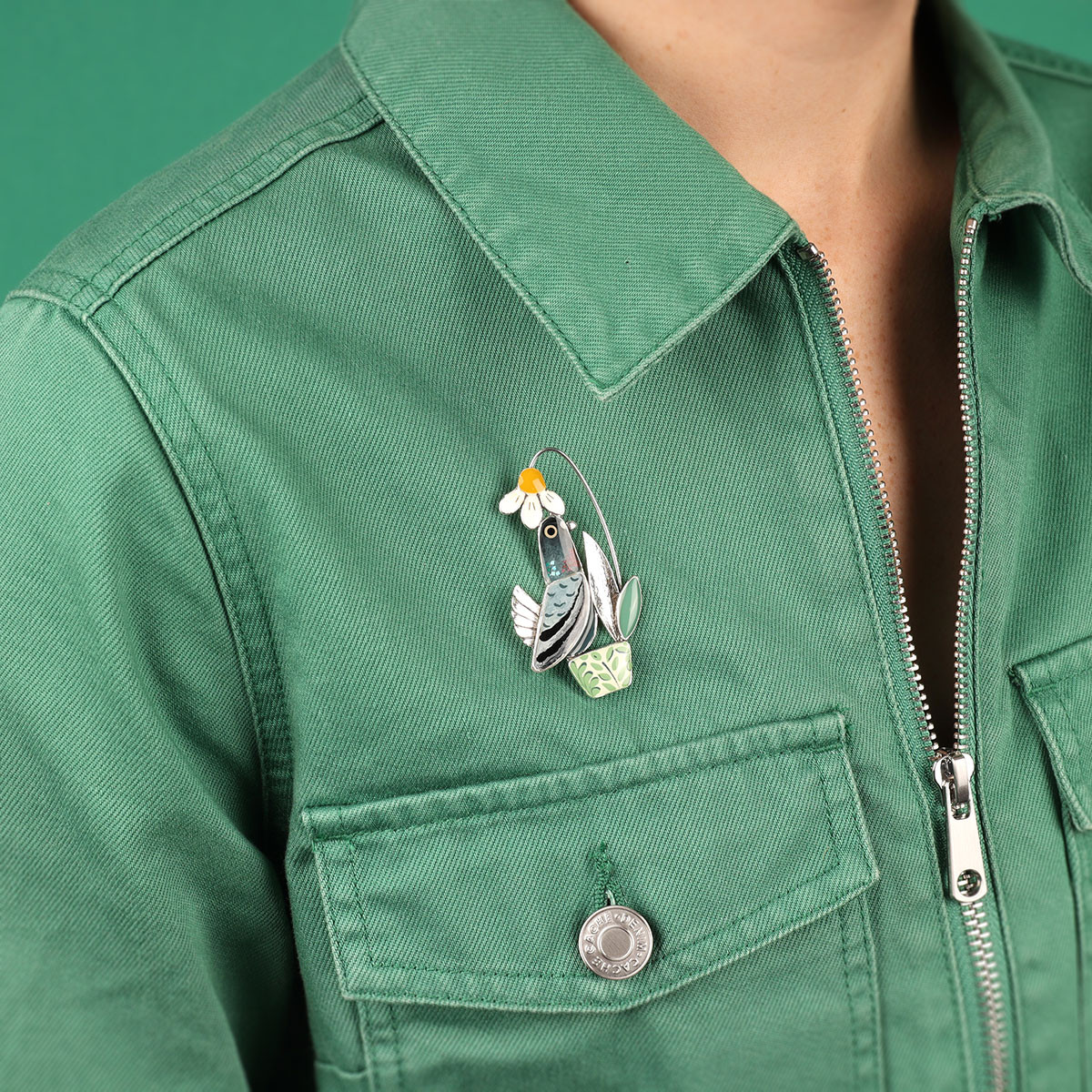 Broche fantaisie TARATATA livrée dans la pochette de la marque.