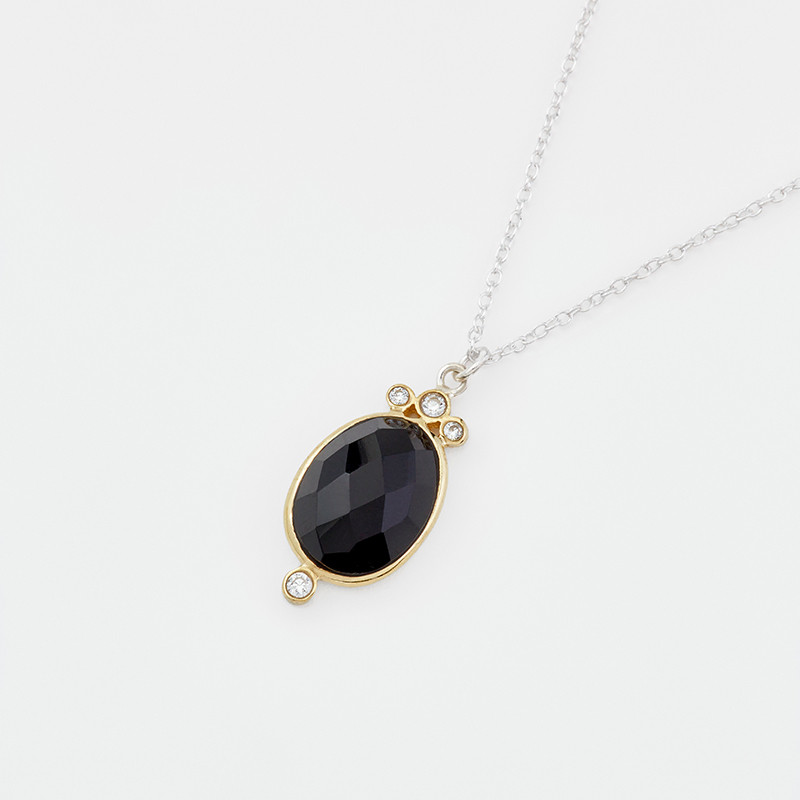 Collier pendentif en Onyx Noir en Argent 925.