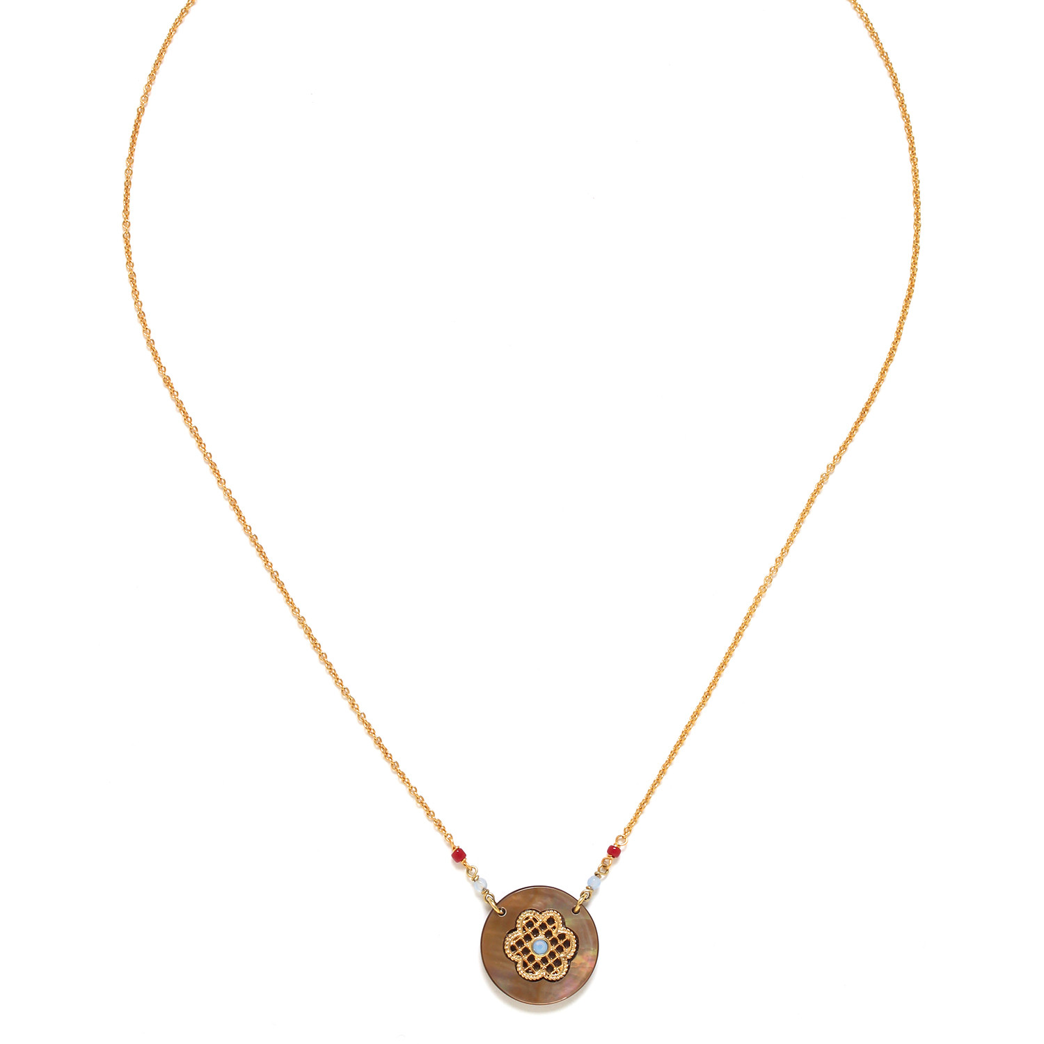 Collier Médaillon en Nacre brune.
