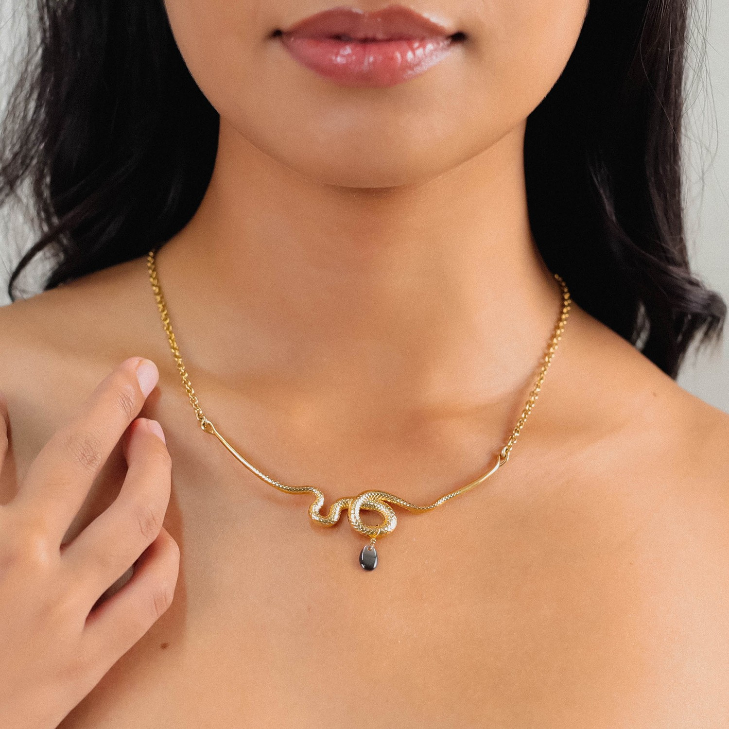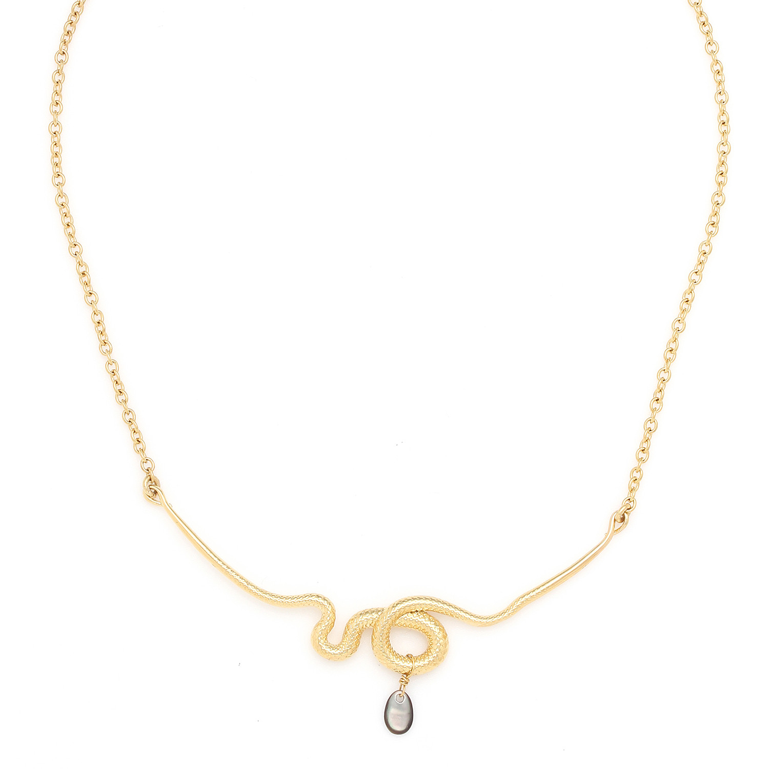 Collier Court doré signé ORI TAO bijoux orné d’un petit serpent.