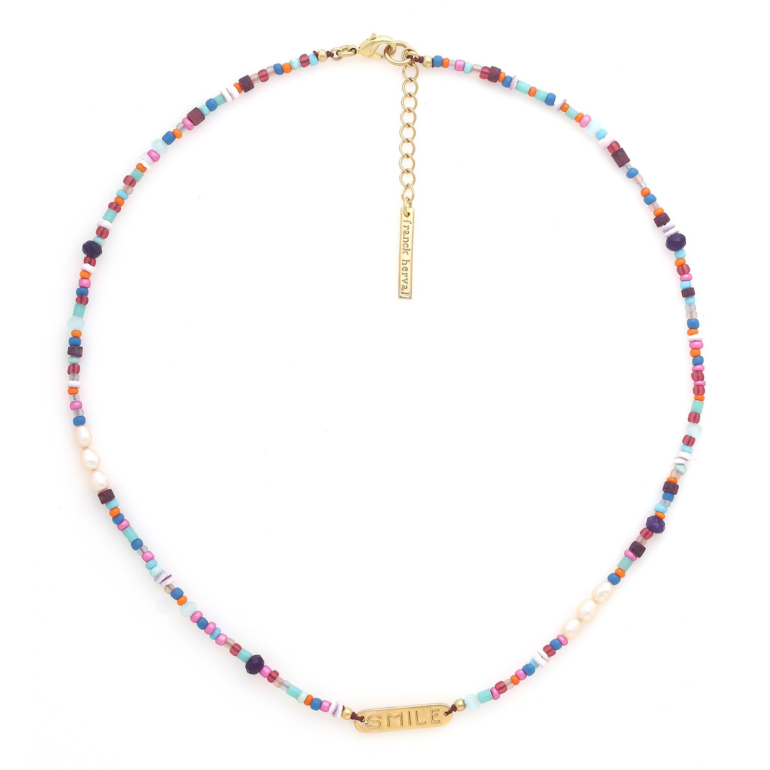Collier Court Joy signé FRANCK HERVAL orné d’une plaque doré gravée smile.