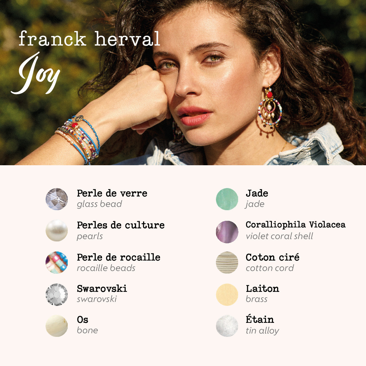 Découvrez sur bijoux-totem.fr la collection Joy : l’énergie en bijoux. Perles multicolores, jade, corail violet, coton ciré… Une collection vive et audacieuse qui crée sa propre tendance. Chaque pièce mêle détails ludiques, textures variées et mélanges inattendus. À porter en accumulation pour un look lumineux et plein de caractère.