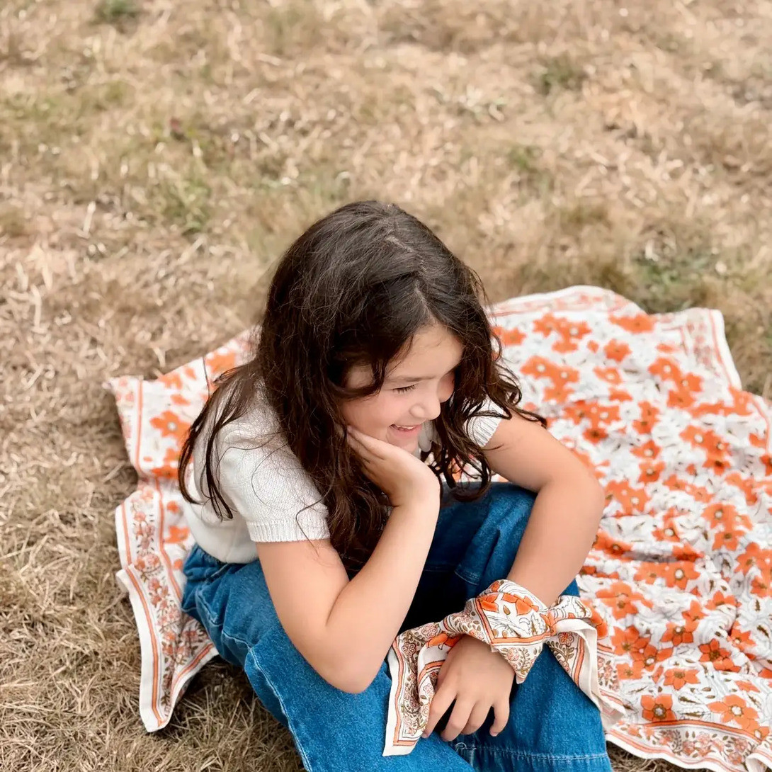 Ce foulard est confectionné artisanalement grâce à la technique indienne du block-print, les couleurs sont réalisées à partir de pigments naturels. Cette confection manuelle peut entraîner certaines irrégularités qui en font le charme en le rendant unique ♡