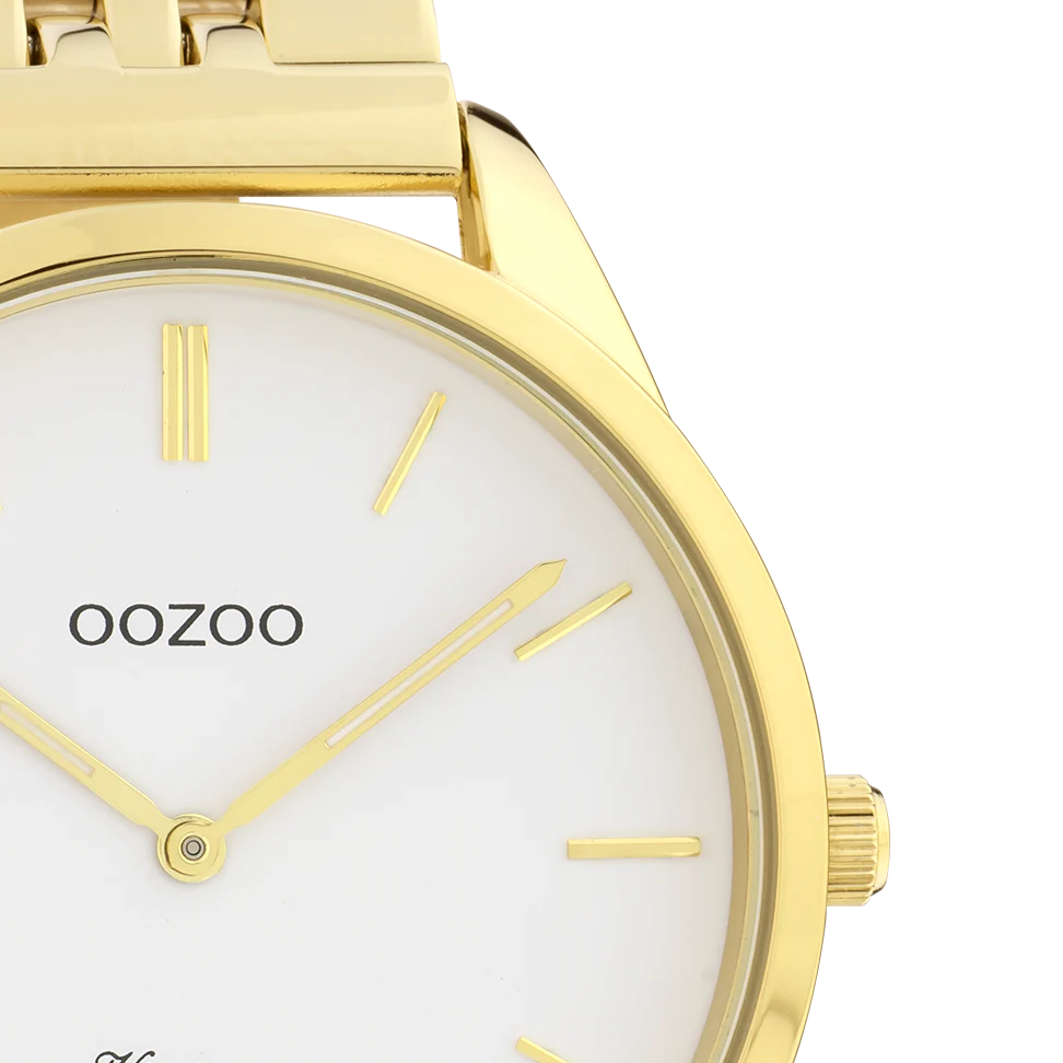 Montre femme ronde signée OOZOO. Cette montre femmes est aussi bien sophistiquée que confortable à porter grâce à son boitier rond en métal couleur or de 38 mm et
